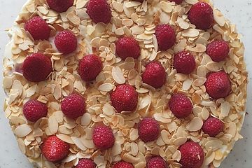 Den boden mit dem pudding bestreichen, die erdbeeren drauf verteilen und die sahne zwischen die erdbeeren spritzen.